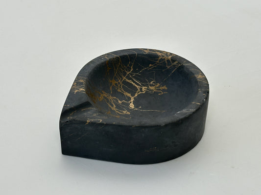 Aschenbecher TROPFEN schwarz Marmorierung gold
